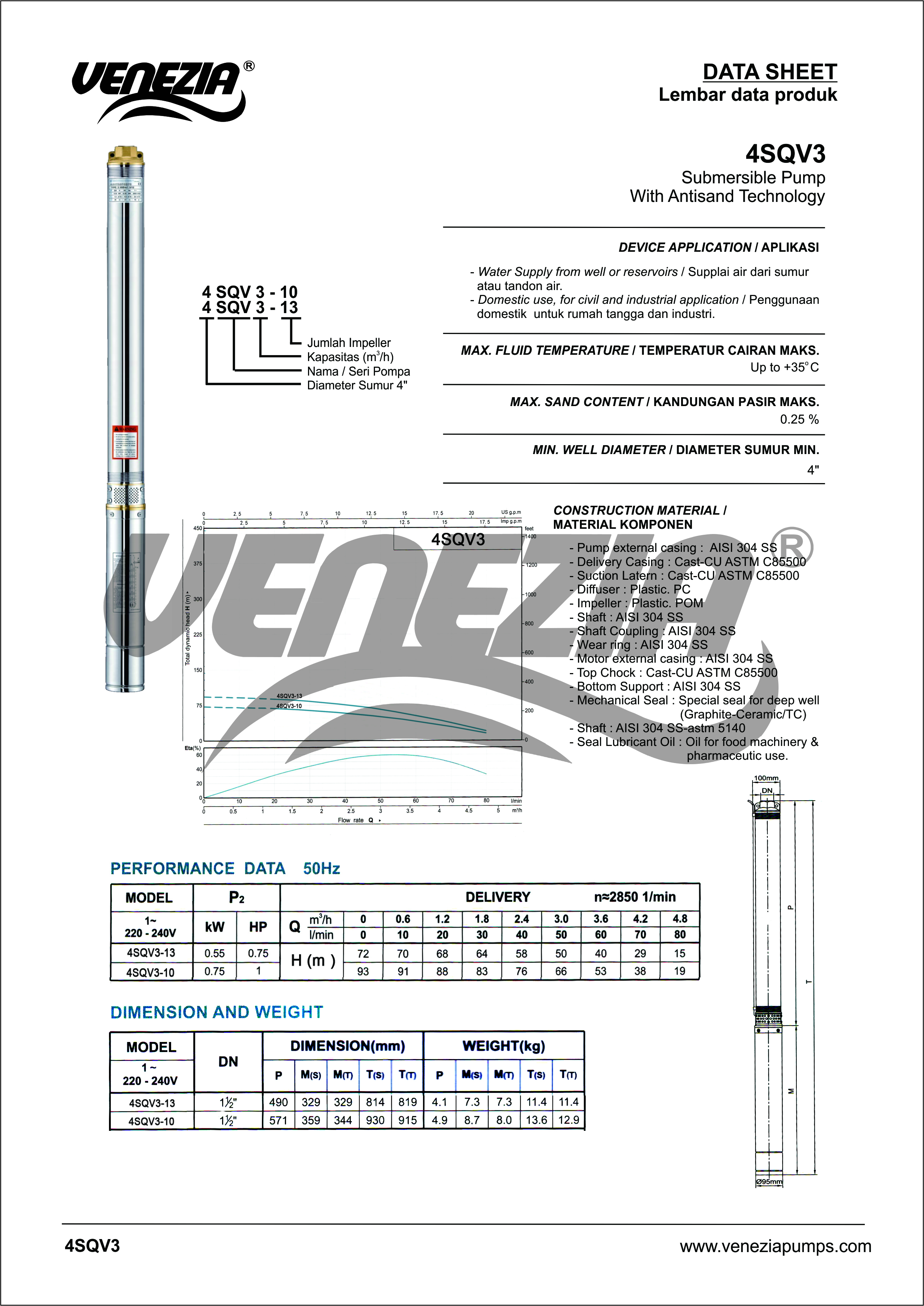 DIAGRAM POMPA SUBMERSIBLE 4SQV3 VENEZIA