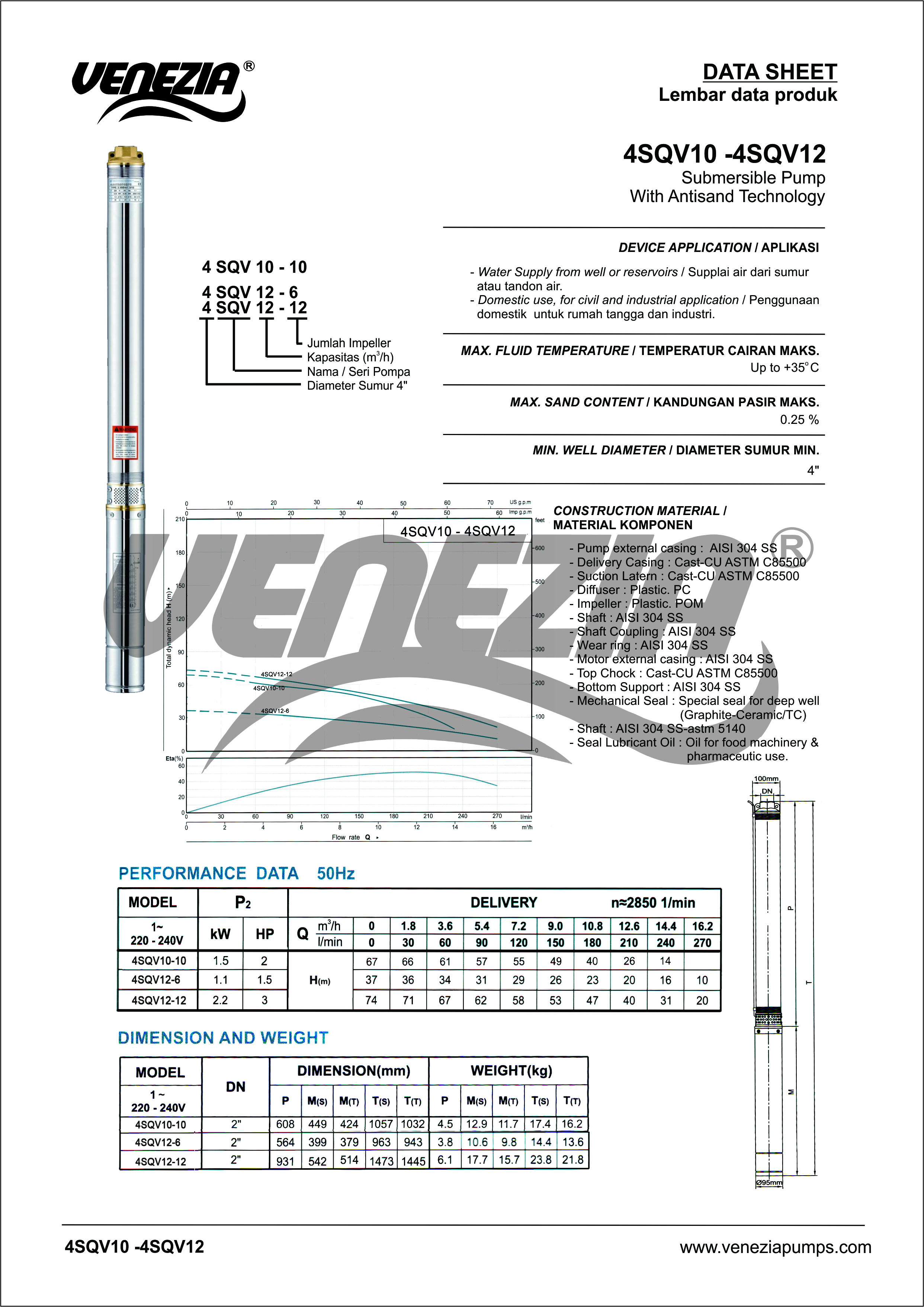 DIAGRAM POMPA SUBMERSIBLE 4SQV10 VENEZIA