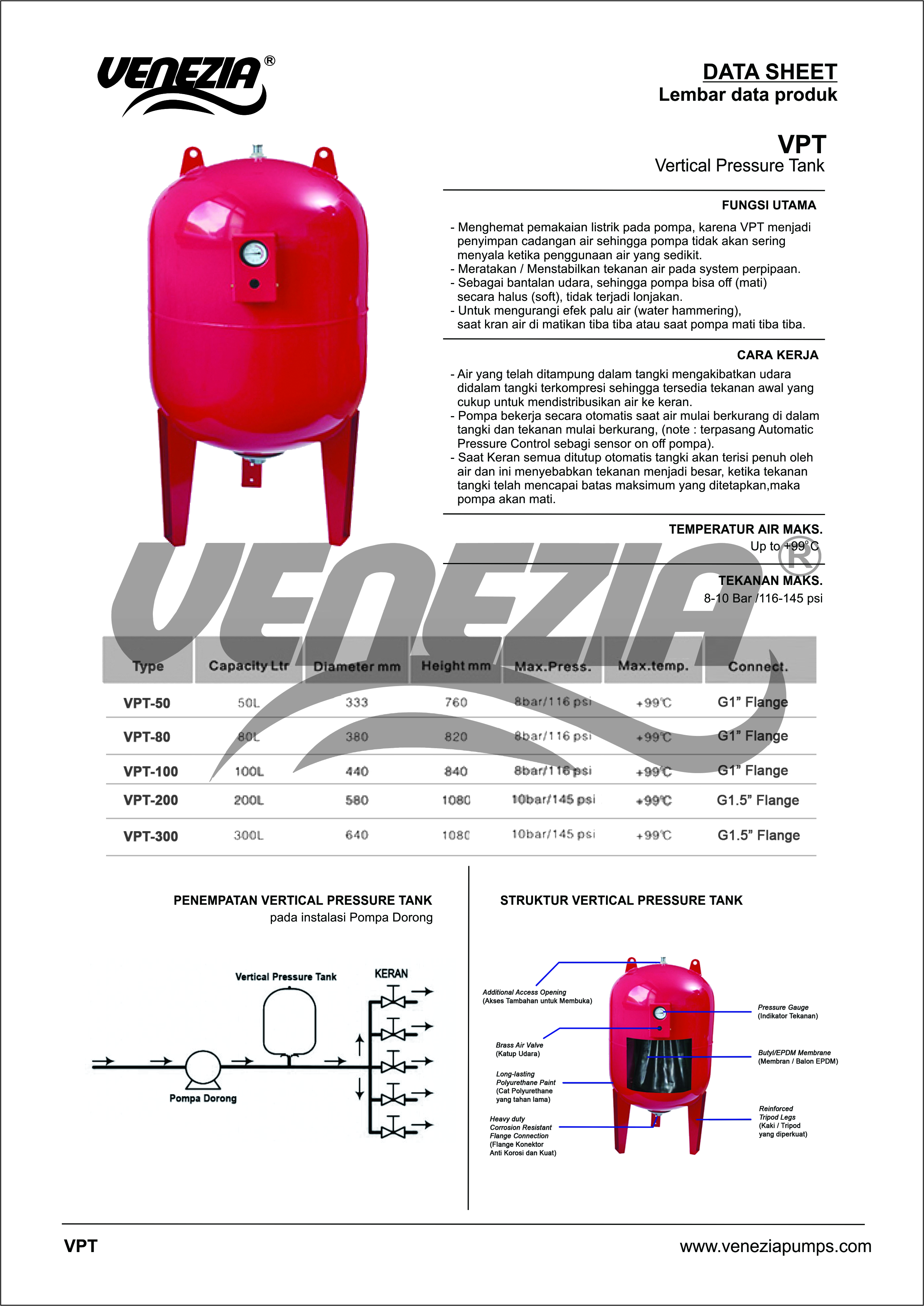 Pressure tank dapat digunakan pada aplikasi pressure booster system, potable water supply system, expansion system, sprinkler system, dll